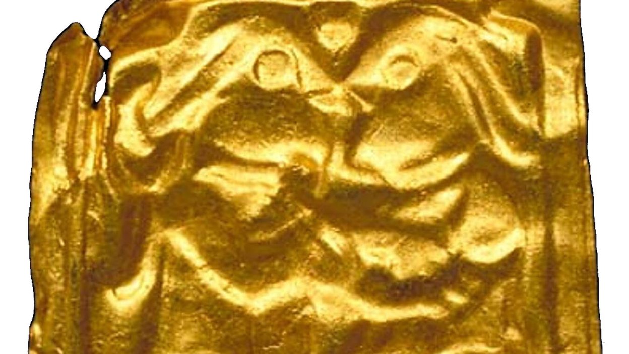 En av Helgös många guldgubbar där ett par omfamnar varandra. Foto: SHM